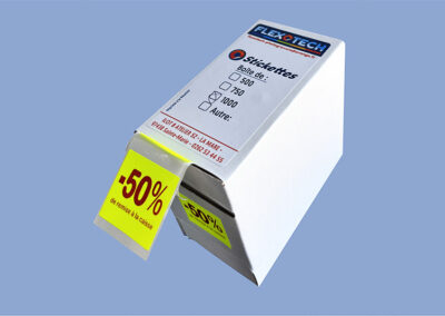 Flexotech propose également la vente d’imprimantes thermiques d’étiquettes adhésives de marque CAB, destinées aux artisans et aux industriels, ainsi que la vente de consommables dans le domaine de l’étiquetage et de l’emballage.